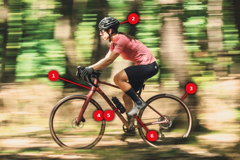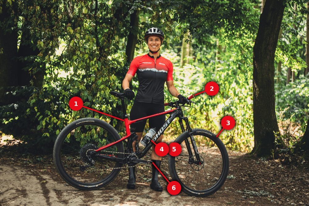 Nová XC mašina má sice oproti předchůdcům menší zdvihy, ale těch 120 mm vpředu a vzadu je pro její styl jízdy naprosto dostačující. Nakonec sama Eva přiznává, že se do žádných extrémů na trailech nepouští. "Jezdím v klidu. A nemám žádný takový to ego, že bych měla jet rychlejc, nebo že mi kluci ujedou. A jenom si to užívám na pohodičku. A vlastně si užívám i to, že nemusím se tam nějak překonávat moc, že nepotřebuju bejt dole první," řekla nám v rozhovoru.