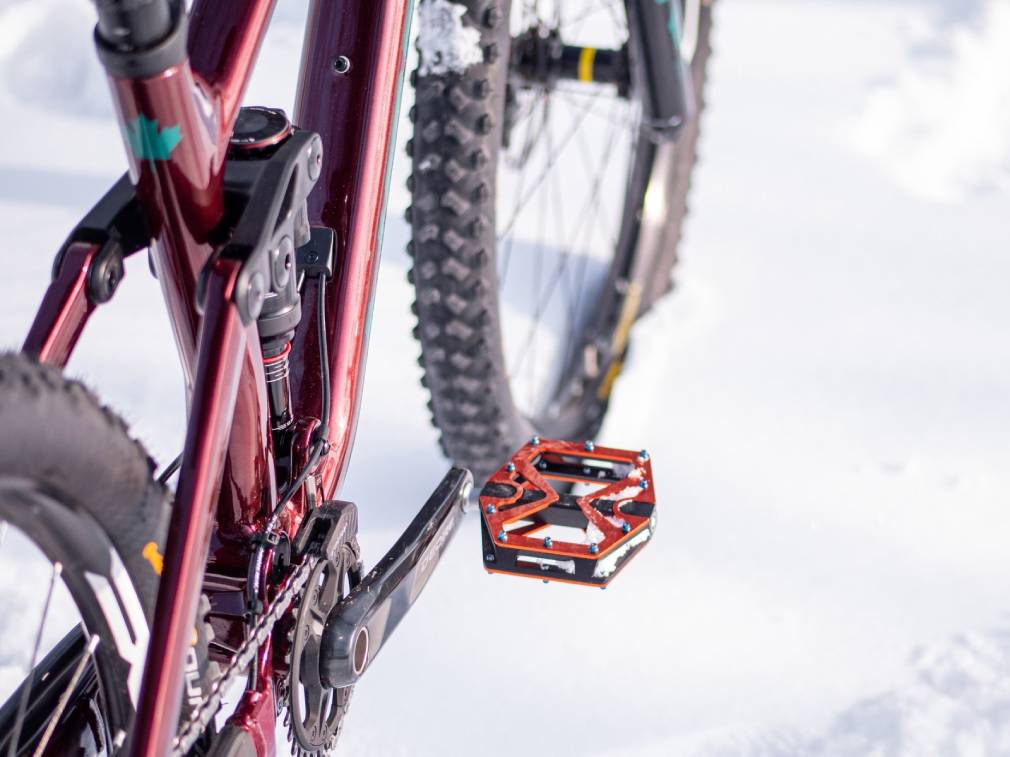 Z dosavadních videí víme, že Damjan jezdil na "dvacetsedmapůlkách", takže se dá předpokládat, že i Sighta C3 si pořídil ve velikosti 27.5. Detailní specifikaci najdete zde. Z fotek se dá zjistit jen to, že si Damjan kolo přezul na kevlarové pláště CONTINENTAL Mountain King 27.5x2.3 ProTection se zvýšenou odolností proti proražení a na kliky našrouboval oranžové pedály Exustar E-PB535-OG s dvojitou hliníkovou platformou a vyměnitelnými piny. Víc nám snad už brzy na svých sociálních sítích prozradí sám Damjan.