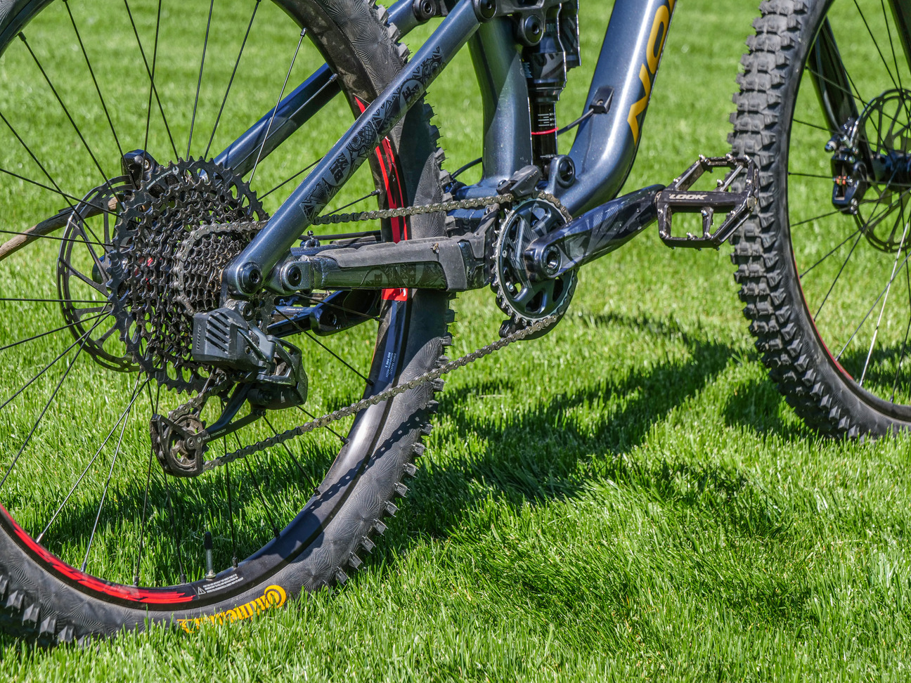 Oproti továrnímu osazení proběhla změna ještě na poli pohonu. Přehazovačku SRAM GX Eagle nahradilo bezdrátové řešení SRAM GX AXS. Nakonec Damjan na svém Norcu Sight C2 vyměnil i sedlo, představec, řídítka a gripy. Vše doladil do zlata a vzhledově tak svou allmountain raketu vystřelil do úplně jiného vesmíru.