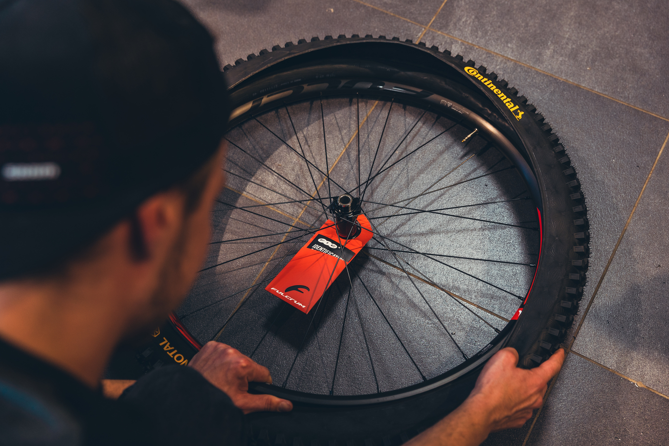 Damjanův set-up vychází z modelu NORCO Sight C2 SRAM Grey/Gold 29 ve velikosti M, ale tovární 29" kola hned vyměnil za ultralehké výplety FULCRUM Red Fire 5 27.5 Boost 27,5". "Ja jsem tohodle Sighta nafasoval v 29" kolech. Nahodil jsem na to 27,5" kola, protože si tam chci vyzkoušet dát potom v průběhu i 'devětadvacítku' dopředu. Udělat si mulleta," vysvětluje výběr kol Damjan. "Kdybych měl 'sedmadvacítku' originál, tak bych to musel měnit i s vidlicí. Takhle jenom přehodím přední kolo," doplňuje.