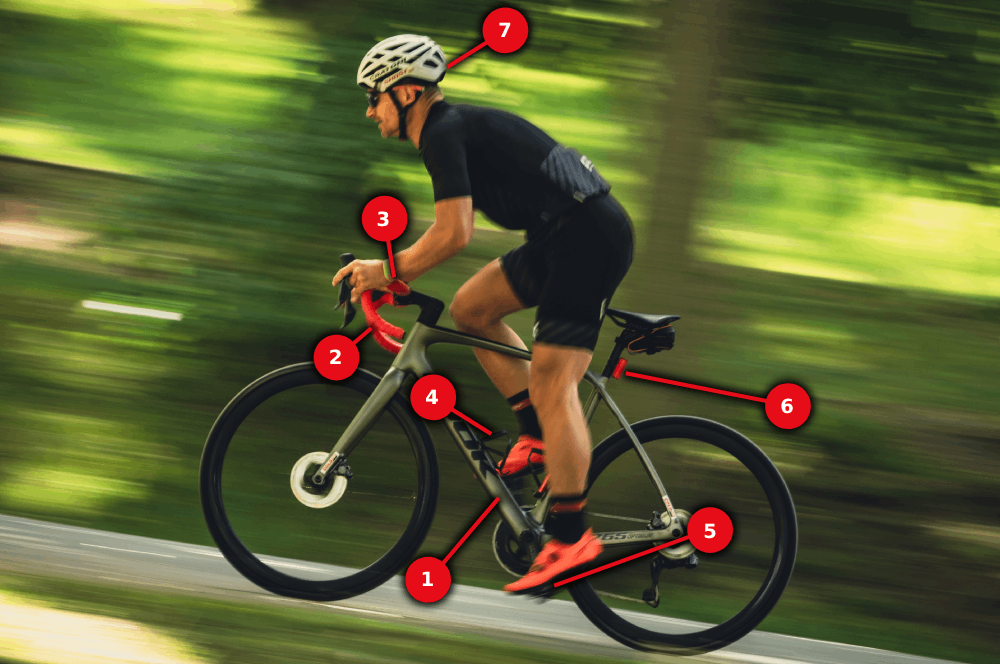 Spojením těchto komponentů a vlastností vzniká lehké karbonové kolo s vytrvalostně laděnou geometrií. Ta zaručuje ideální posed na dlouhé tratě a poskytuje jezdci optimální poměr mezi výkonem a komfortem. Rám dokáže pojmout pláště do šíře 34 mm, takže si z kola můžete udělat i sportovní gravel. Do takové "přestavby" ale Honza nešel.