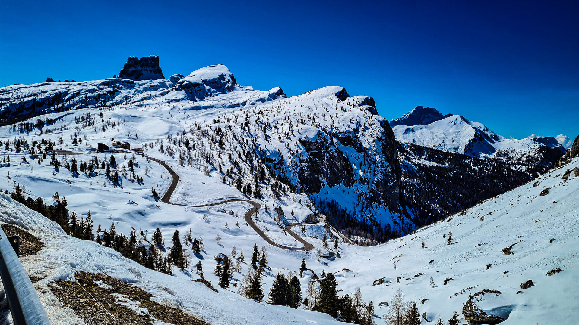 Horní pasáž na Passo di Falzarego a podmínky na Passo di Valparola