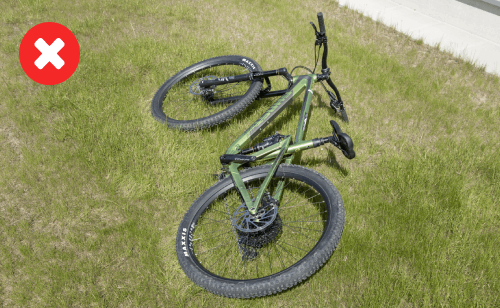Když kolo není o co opřít, položte ho na zem. Ideálně na trávník, ať neřešíte prodřené gripy (viz výše). Kolo pokládejte vždy na levý bok, ať po zastávce nehledáte mechanika. Vpravo je totiž přehazovača a ta je na kontakt s čímkoliv docela citlivá. Když schytá ránu z boku, může se ohnout patka (držák přehazovačky) a řazení pak nefunguje, jak má.