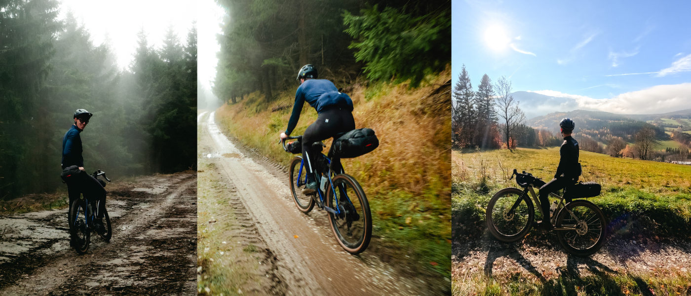 Vrstvení oblečení funguje nejlépe – funkční tričko jako základ, izolační mezivrstva a větru či vodě odolná bunda navrch. Nezapomeňte na rukavice, čepici pod přilbu a nákrčník – právě přes hlavu uniká nejvíce tepla. V zimě se určitě hodí i zimní tretry, ale pokud je nemáte můžete použít i návleky na tretry, které udrží teplo a ochrání před větrem i vlhkostí. Pokud je vám na začátku mírně chladno, je to správně – tělo se během jízdy zahřeje.
