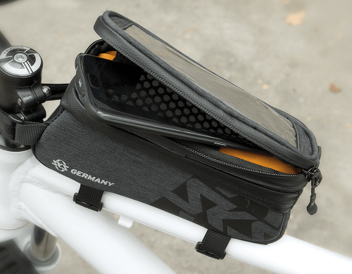 Brašnička na horní rámové trubce, kterou se k rámu a představci upevňuje nejčastěji pomocí pásků na suchý zip, nabízí spolehlivou ochranu telefonu a poměrně velký úložný prostor. Kromě mobilu do ní sbalíte i peněženku, klíče, energetickou tyčinku nebo powerbanku pro případ, že vám spuštěná navigace v telefonu "vyždímá" baterku.
