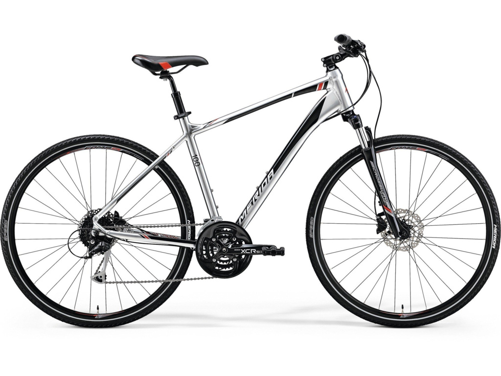 Merida Crossway 100 je velmi dobře osazené kolo, vhodné pro cyklistické nadšence, kteřé preferují dobrý poměr cena/výkon. Lehký hliníkový rám je osazen odpruženou vidlicí Suntour s uzamykáním, spolehlivými komponenty Shimano s 27 převody a hydraulick