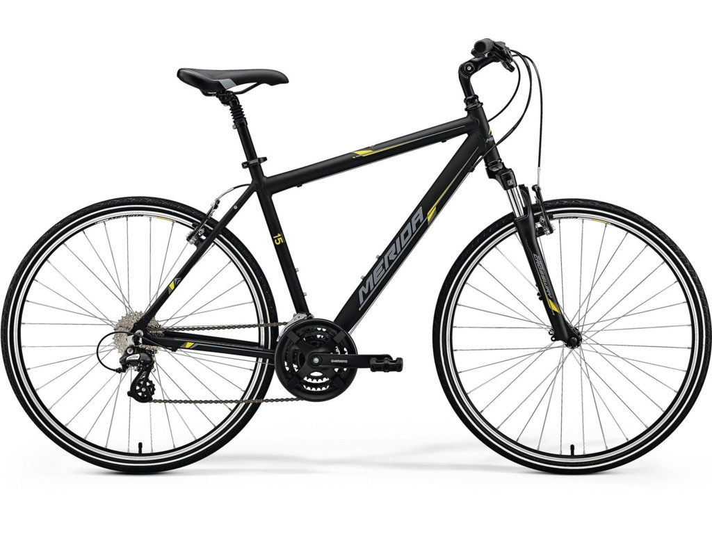 Merida Crossway 15-V je ideální pro rekreační cyklisty. Lehký hliníkový rám je osazen odpruženou vidlicí Suntour, spolehlivými komponenty Shimano s 24 převody a ráfkovými brzdami. Kolo je vybaveno odpruženou sedlovkou a výškově stavitelným představce