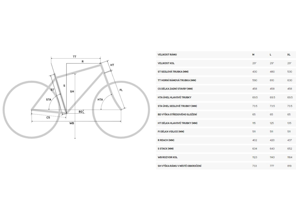 - Vidlice: Suntour XCM32 DS; Coil; 100mm; Tapered; 47mm fork offset; 29x2.4" max WHS