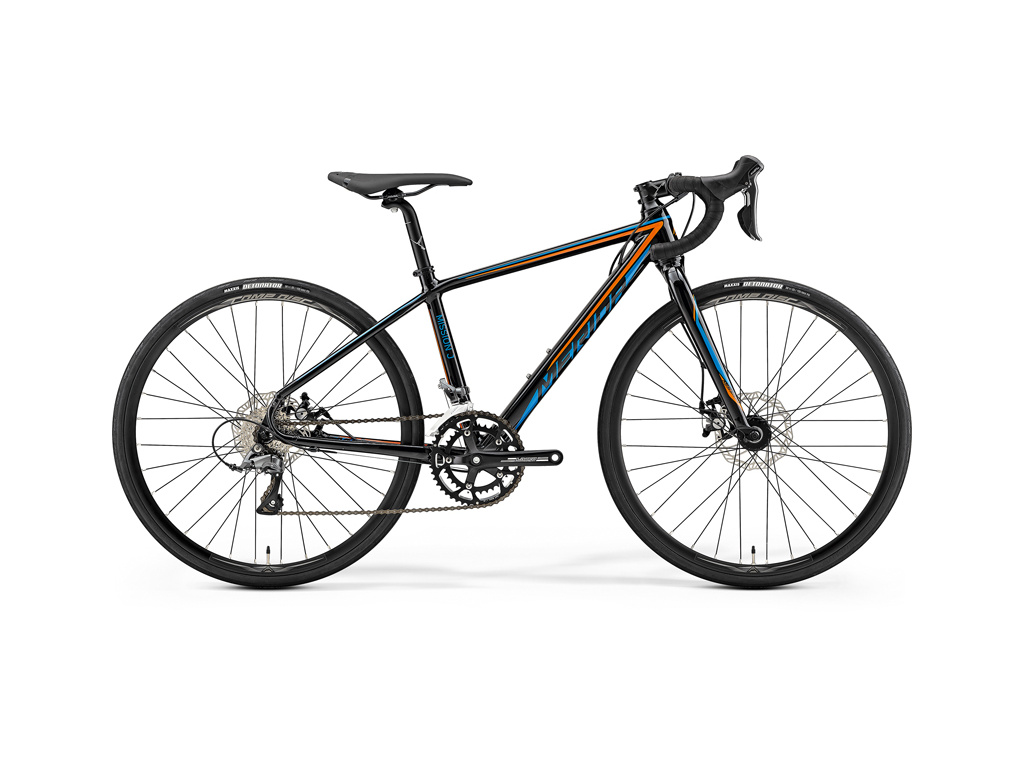 Merida Mission J.Road je lehké hliníkové silniční kolo pro malé silniční cyklisty. Kolo je osazeno sadou Shimano claris o 2x8 převodech, mechanickými brzdami a 26 palcovými koly obutých do plášťů Maxxis Detonator.