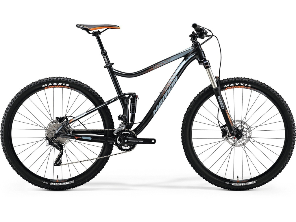 Vstupní model celoodpruženého trailového kola Merida One-Twenty 7.400 s hlínikovýn rámem na 27,5 palcových kolech, vidlicí a tlumičem SR Suntour Raidon se zdvihem 120/120 mm, komonenty Shimano XT/Deore s 2x10 převody dělá s tohoto kola ideálního spol