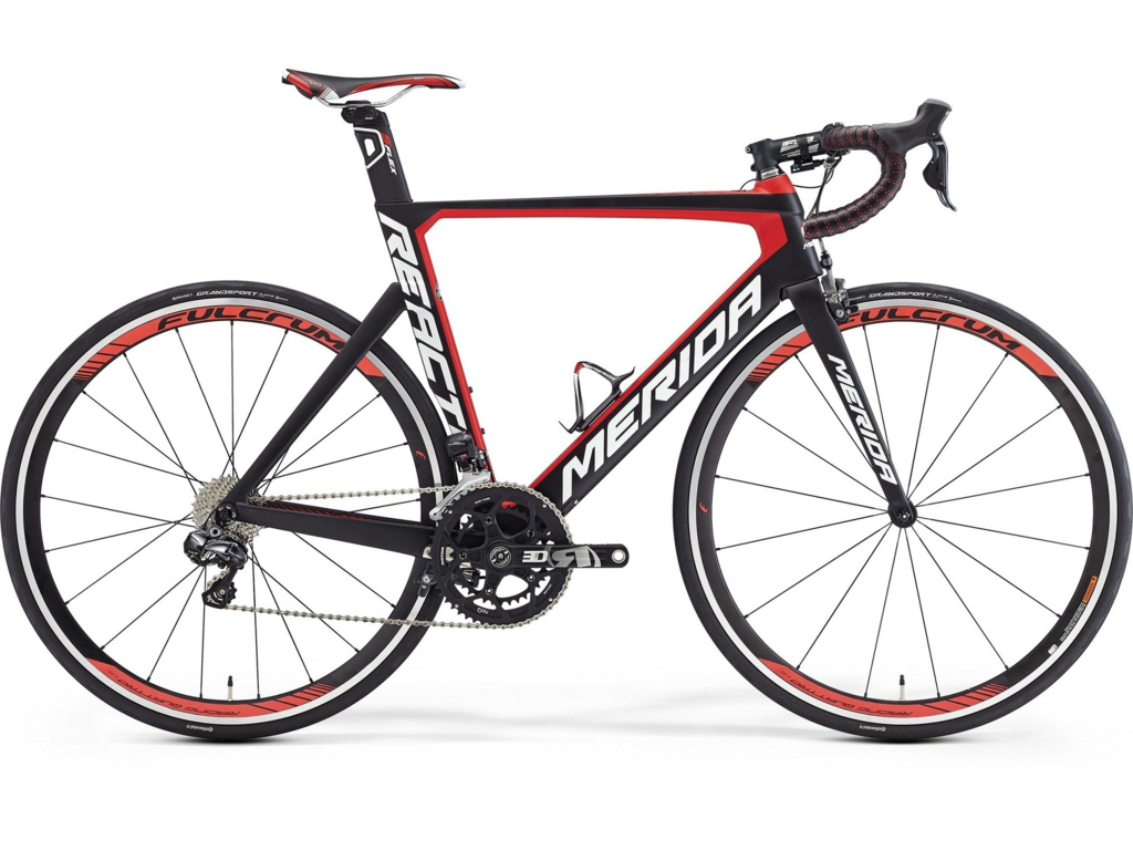 Merida Reacto je jedno z nejaerodynamičtějších silničních kol na světě i v roce 2016. Už od začátku byl zamýšlen jako týmové kolo našeho týmu LAMPRE MERIDA. Byl specificky navržen pro sprinterské etapy nebo možné sólové úniky. Ale hned v dalším roce si ho tým osvojil jako „standardní pracovní nástroj“. A i v roce 2016 zůstává nejoblíbenější volbou našich profesionálních cyklistů. Model Merida Reacto 7000-E je osazen aerodynamickým karbonovým rámem a elektronickou sadou Shimano Ultegra DI2 s 22 převody.