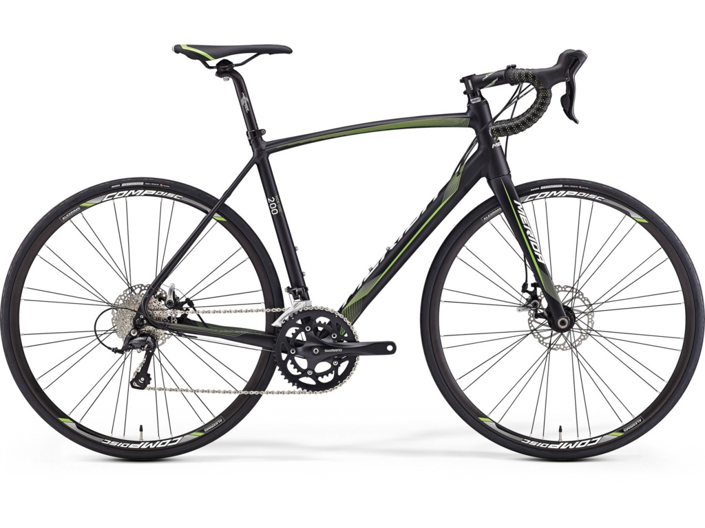 Kotoučové brzdy dorazily už i na silnici. Model Merida Ride Disc 200 je hliníková verze modelu Ride s komfortnější geometrii pro pohodlnější jízdu i na dlouhých trasách. Hlinikový rám s kotoučovými brzdami a komponenty Shimano Sora.