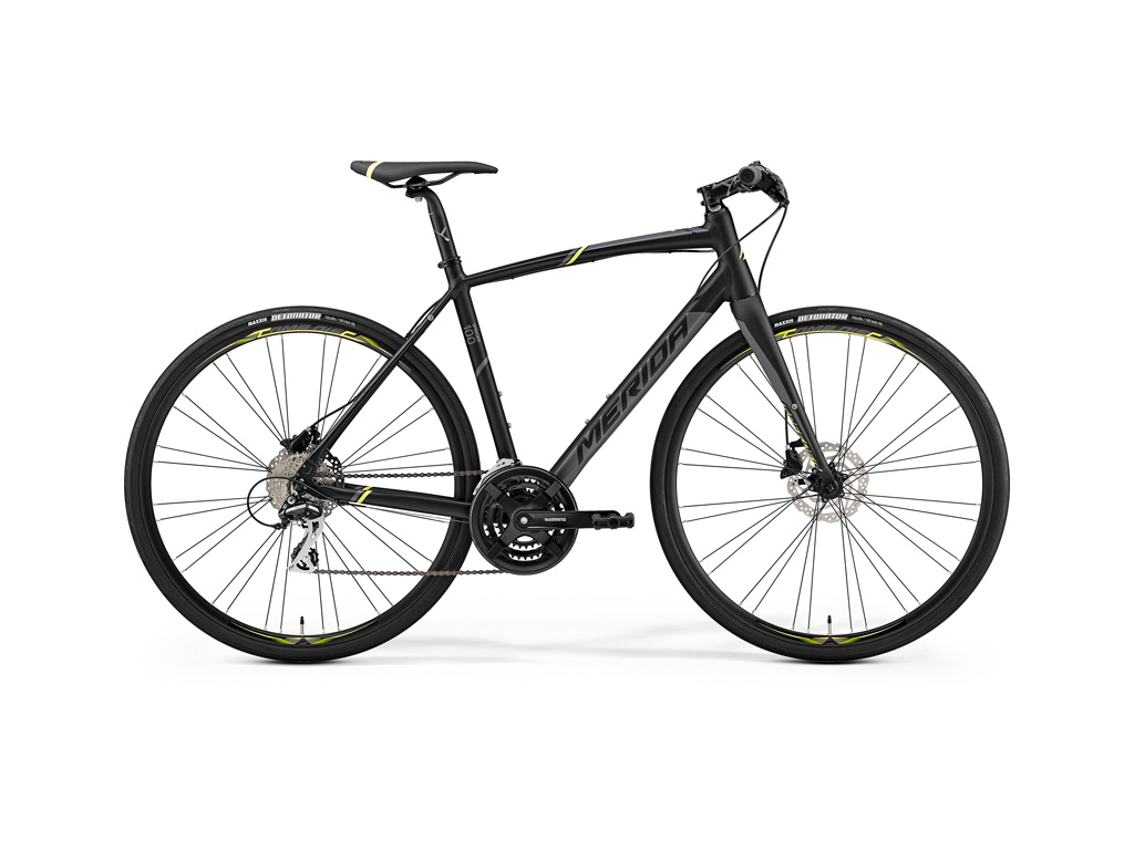 Fitness modely kol Merida Speeder jsou pohodlnější plnohodnotnou alternativou k silničním kolům díky rovným řidítkům. Model Speeder 100 má hliníkový rám s pevnou celokarbonovou vidlicí, osazen hydraulickými kotoučovými brzdami Shimano a komponenty Sh