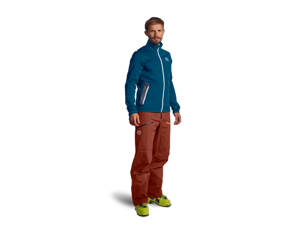 ORTOVOX Fleece jacket je pánská mikina, která reprezentuje perfektní funkčnost a dokonalý komfort tvořený prvotřídními materiály. Tasmánská vlna na vnitřní straně podporuje pocit pohodlí a tepla, polyester na vnější straně zajišťuje příjemný hladký povrch a dlouhou životnost. Mikina je vhodná jak pro extrémní sporty, tak pro každodenní nošení. Díky novému způsobu pletení má matný povrch a díky tradičnímu plstěnému lodenu na vnitřní straně kapes si zmrzlé ruce vždy snadno ohřejete. Mikina má dvě prostorné kapsy, kam se vejdou i předměty rozměru bloku A5, pro lepší teplotní komfort poutka na palec na lemech rukávů. Model má také kvalitní dlouhý YKK® zip, vyšší límeček, ergonomický střih a anatomicky tvarovanou kapuci.