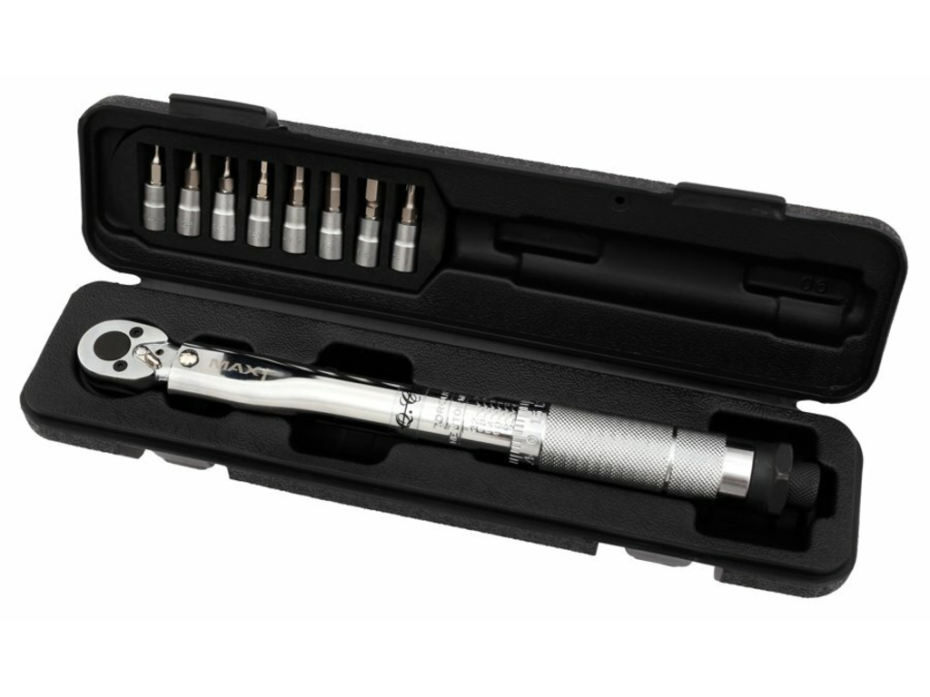 Tento momentový klíč zajistí přesnou práci pro kroutící moment v rozsahu 2 - 24 Nm. Klíč (1/4" ráčna) je dodáván v plastovém pouzdru včetně imbusových klíčů 3/4/5/6/8/10 a torx T25.