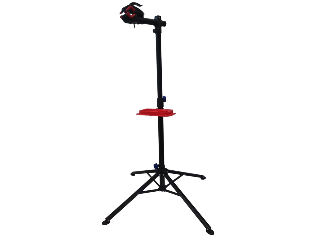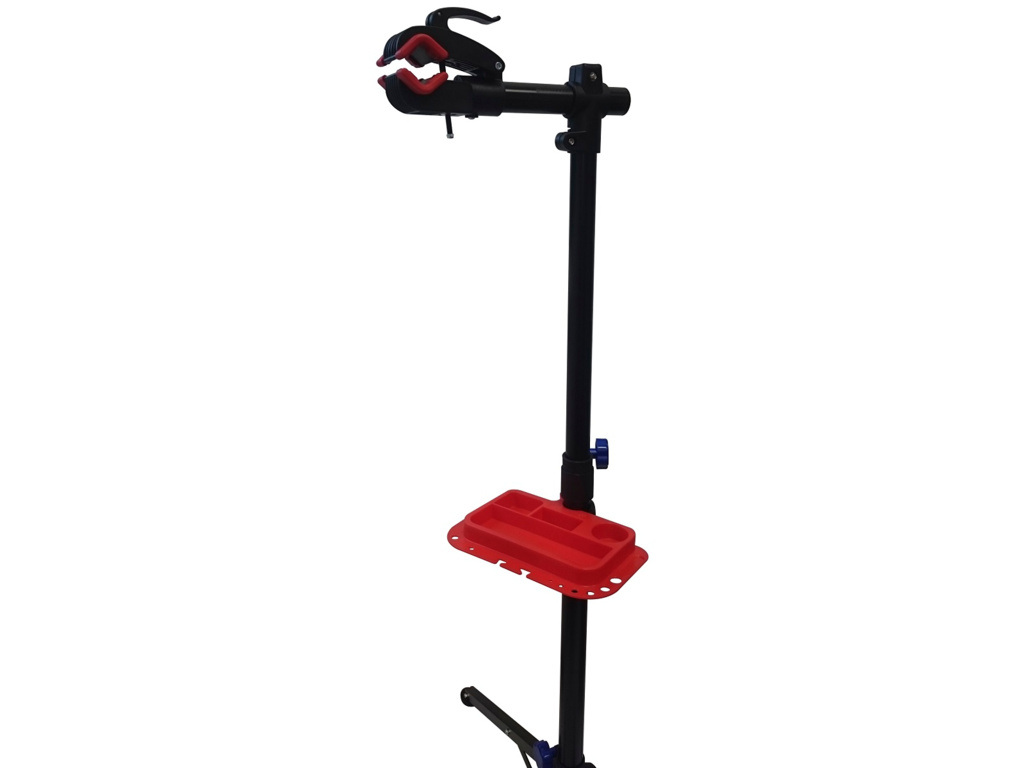 Montážní stojan pro domácí použití je vhodný pro běžnou údržbu jízdních kol a elektrokol. Základní konstrukce je vyrobena z ocelových trubek, díky čemuž je stabilní, a upínací mechanismy z tvrzeného plastu. Jízdní kolo lze uchytit za horní rámovou i sedlovou trubku. Součástí je praktická plastová miska pro odložení nářadí.