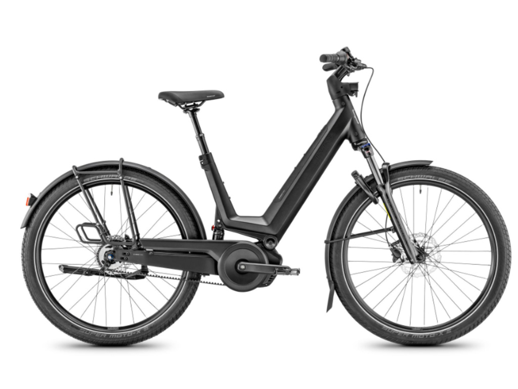 Městské elektrokolo MOUSTACHE Mardi 27.4 FS s novým motorem Bosch Performance Line PX, bezúdržbovým řazením Shimano Nexus 5 s řemenem a plnou výbavou pro každodenní jízdu.