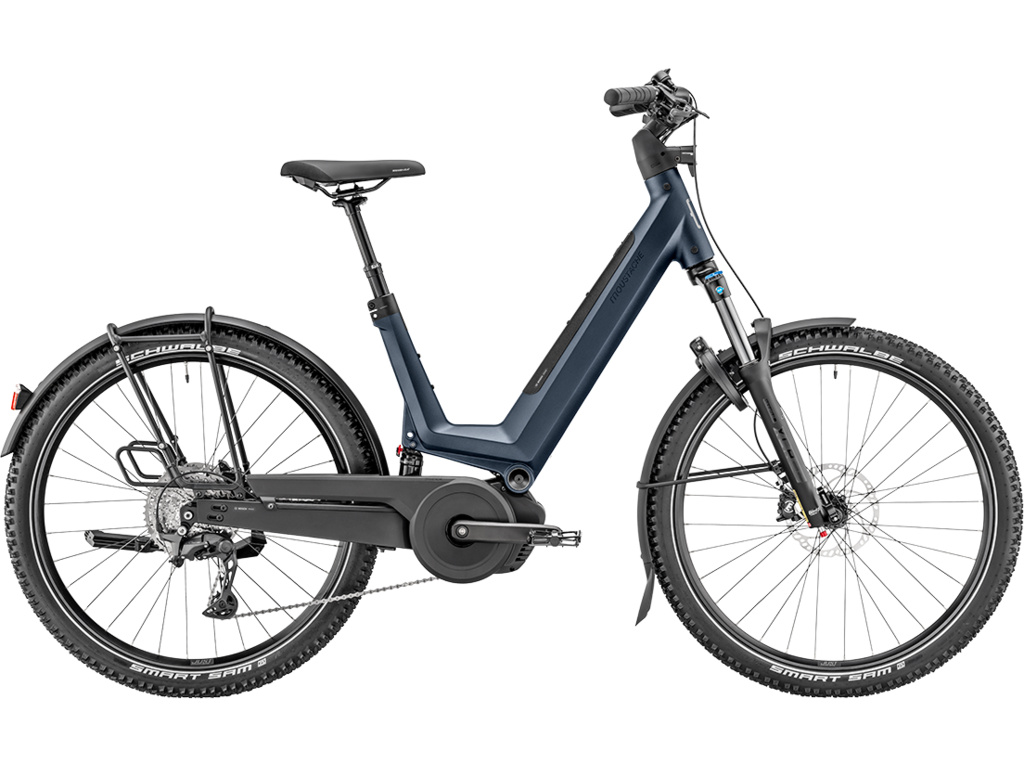 MOUSTACHE Samedi 27 Xroad 6 FS je vrcholem modelové řady Xroad – plně odpružené trekingové elektrokolo připravené na dobrodružství ve městě i mimo něj. Srdcem kola je motor Bosch Performance Line CX 5. generace s točivým momentem až 100 Nm, který si poradí i s náročným stoupáním. Baterie s kapacitou 600 Wh je plně integrována do rámu a zajišťuje spolehlivý dojezd. Komfort zvyšuje odpružená vidlice SR Suntour se zdvihem 120 mm a zadní tlumič Magic Grip Control s propracovanou kinematikou rámu. Moderní kokpit je vybaven barevným displejem Bosch Kiox 500. Samozřejmostí je praktická výbava pro každodenní použití – nosič MIK HD, integrované blatníky, výkonné světlo Trelock a příprava pro rámový zámek a Moustache Protect Option.