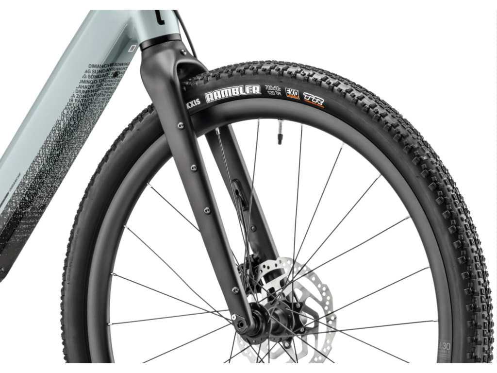 Komfortní výbava zahrnuje odpruženou teleskopickou sedlovku EXA 860i se zdvihem 75 mm, elastomerový představec, a především objemné pláště Maxxis Rambler 700x50, které výborně tlumí nárazy a poskytují stabilitu i v náročném terénu. Shimano CUES 1x10 převody a hydraulické kotoučové brzdy zajišťují spolehlivý výkon i při dlouhých sjezdech.