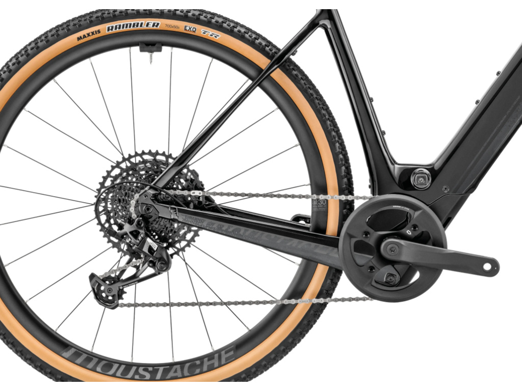 Model Samedi Dimanche 29.4 Black od francouzské značky Moustache představuje nový standard v segmentu sportovně-cestovních e-gravel kol. Základem je přepracovaný rám z kvalitního hliníku 6061 T4 T6 s čistým, minimalistickým designem a perfektně integrovanými komponenty. Rám ukrývá kompaktní baterii Bosch CT 400 Wh, kterou lze pomocí PowerMore extenderu navýšit až na 650 Wh – ideální pro delší výpravy.