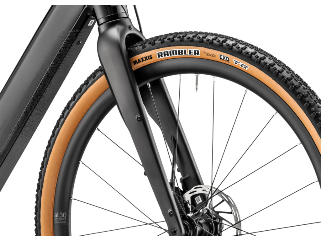 Na komfortu si tento model zakládá: karbonová vidlice efektivně tlumí vibrace, elastomerový představec a teleskopická sedlovka EXA se zdvihem 75 mm zajišťují pohodlnou a stabilní jízdu i na dlouhých a rozbitých cestách. Komponenty SRAM Apex 1x12 s kazetou 11–50 zubů přinášejí široký rozsah převodů pro různé terény, zatímco 50mm pláště Maxxis Rambler a kotoučové brzdy SRAM Apex se postarají o kontrolu za všech podmínek.