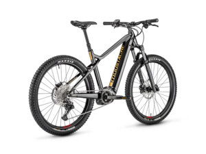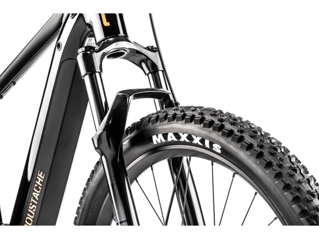 Horské elektrokolo MOUSTACHE Samedi 27 Off 4, osazené výkonným motorem Bosch Performance CX a integrovanou baterií PowerTube 625 Wh. Veškeré jízdní údaje se zobrazují na barevném displeji Kiox 300 uprostřed řídítek. Odpružená vidlice Marzocchi Bomber Z2 zajišťuje komfortní jízdu a pohlcování nárazů na nerovnostech a řazení Shimano Deore s 11 převody pak přesné a spolehlivé řazení. Pro zvýšení komfortu a ovladatelnosti je tento model osazen i teleskopickou sedlovkou.