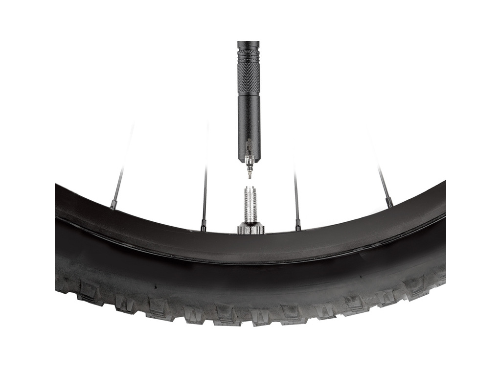 Nářadí: zdrsněná jehla + PCT (Presta Core Tool) pro utažení/povolení jádra ventilu