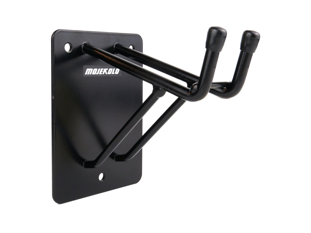 Držák kola na zeď MOJEKOLO s uchycením za pedál je univerzální pro všechny typy jízdních kol, včetně elektrokol, do maximální hmotnosti 25 kg. Připevnění držáku na zeď probíhá pomocí tří hmoždinek a vrutů (nejsou součástí) a pogumované konce držáků zajišťují, aby nedošlo k poškození kola.