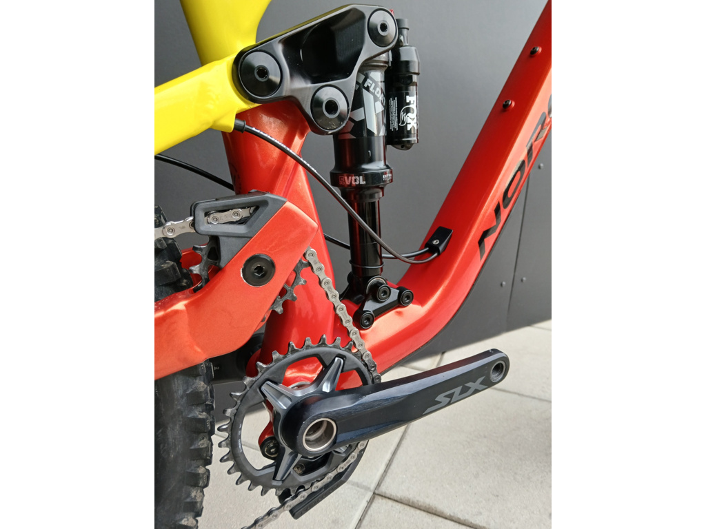 NORCO Sight je našlapaný allmountain stroj, který maximálně zvýší vaši jistotu v terénu i při skocích. NORCO Sight nyní přichází s novým systémem odpružení High Pivot Horst Link. Obecně funguje High Pivot tak, že dráha, kterou opisuje zadní kolo, když narazí na překážku a jde do zdvihu, je šikmo vzad. Díky tomu kolo daleko lépe „žehlí“ terén a udržuje výrazně vyšší rychlost v rozbitých pasážích. Díky kladce se tady také eliminuje zpětný ráz do pedálů, tzv kikback. Pro rok 2024 navrhli inženýři pro nové modely systém High Pivot Horst Link s nekoncentrickou kladkou, která není v ose hlavního čepu. Každý model kola má specifické navržení kladky podle toho, jak moc aktivní je odpružení při šlapání.