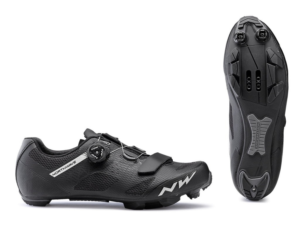 Pánské tretry Northwave s podrážkou XC 10 obsahující gumové protiskluzové prvky. Unibody konstrukce s velkými větracími zónami a velmi odolnými tenkými materiály v ergonomickém střihu. Asymetrické zavazování omezuje nežádoucí tlaky, gumová ochrana špičky.