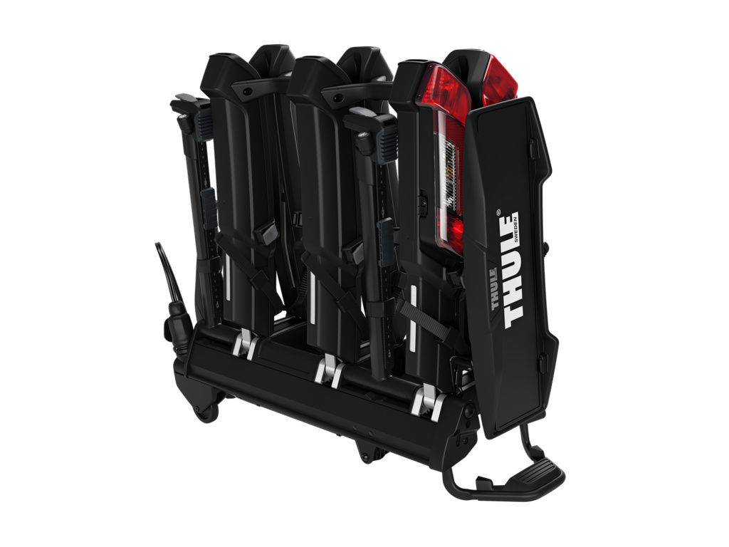 Nosič kol Thule Epos 3 979 je vhodný pro všechny typy jízdních kol včetně elektrokol a jeho použití je rychlé, snadné a pohodlné – díky inovativnímu teleskopickému systému uchycení kol vyžaduje minimální námahu. Ramena pro upevnění kol umožňují jednoduše připevnit kolo za kteroukoli část rámu nebo zadní kolo, což vám poskytuje mnoho možností upevnění. Můžete naložit a vyložit až tři kola v libovolném pořadí – podporovány jsou všechny typy rámů a geometrií, včetně elektrokol, horských kol, gravelových kol a kol s blatníky a nosiči.