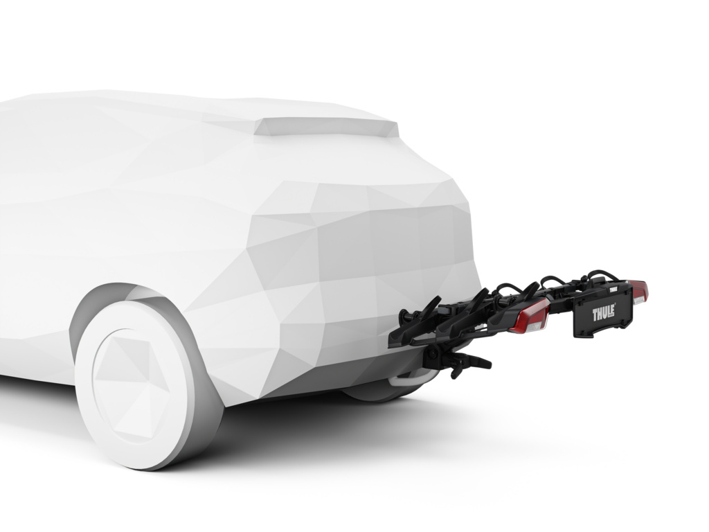 S možností přepravy až dvou kol a speciální funkcí sklopení nahoru Thule OutPace zmenšuje svůj rozměr při parkování, čímž minimalizuje riziko poškození. Integrované světla zajišťují viditelnost a bezpečnost.