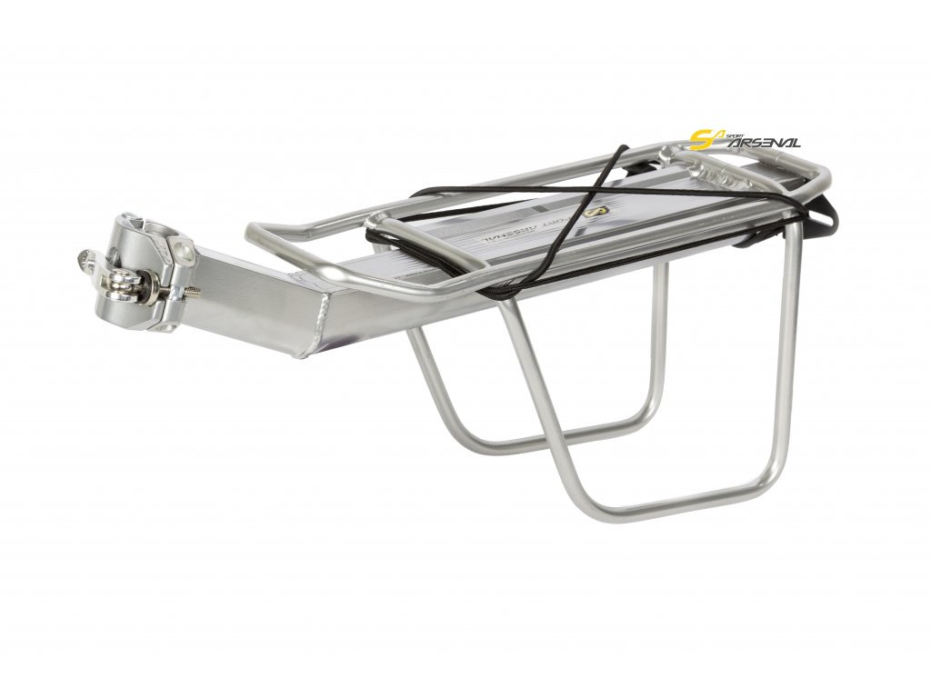 Zadní univerzální nosič na sedlovku Sport Arsenal Art. 220 pro převoz lehčích nákladů je ideální v případech, kdy nelze připevnit standardní nosiče, např. celoodpružená kola nebo kola s atypickou zadní stavbou.