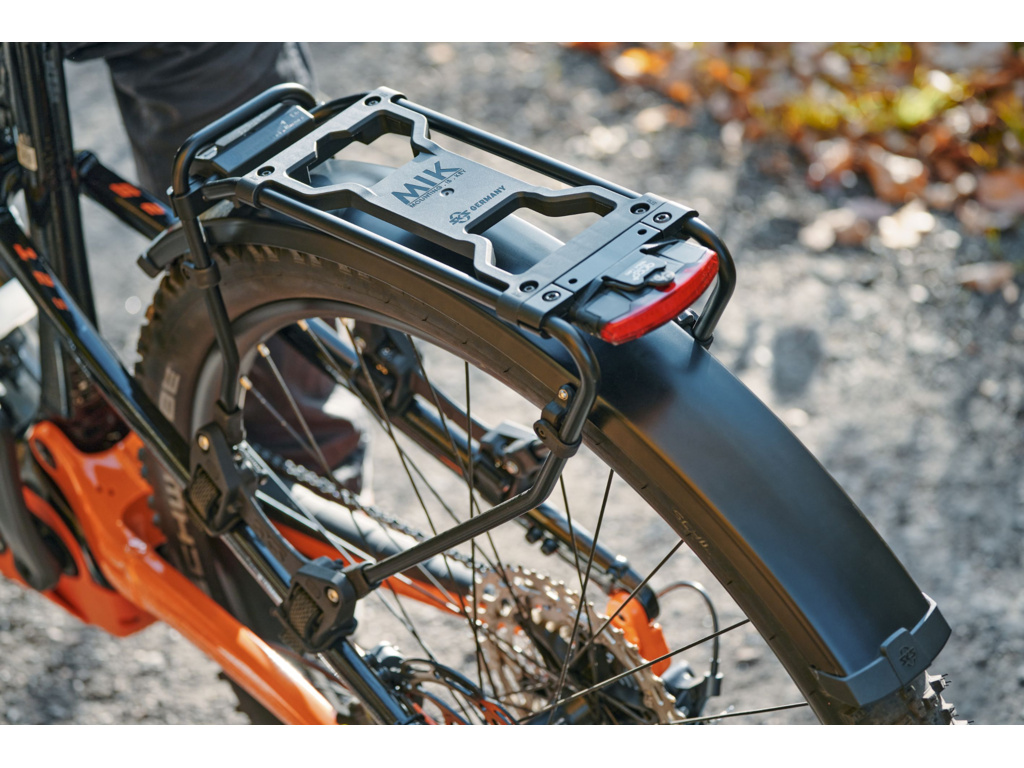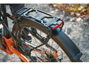 Další chytrou funkcí je adaptérová deska "AVS", která je součástí nosiče. Systém click umožňuje velmi snadné připevnění brašen na kola se systémem AVS, které lze snadno nacvaknout na nosič zavazadel. INFINITY UNIVERSAL bezpečně a spolehlivě přepraví až 12 kg zátěže (není vhodný pro přepravu dětských sedaček). Pod zavazadlový nosič lze volitelně namontovat také blatník INFINITY UNIVERSAL MUDGUARD, a to v několika jednoduchých krocích. Blatník ve dvou šířkách je univerzálně přizpůsobitelný, a nabízí tak optimální ochranu před stříkající vodou na brašny i cyklistu. Dá se dokoupit i přední varianta blatníku ve stejném dizajnu.
