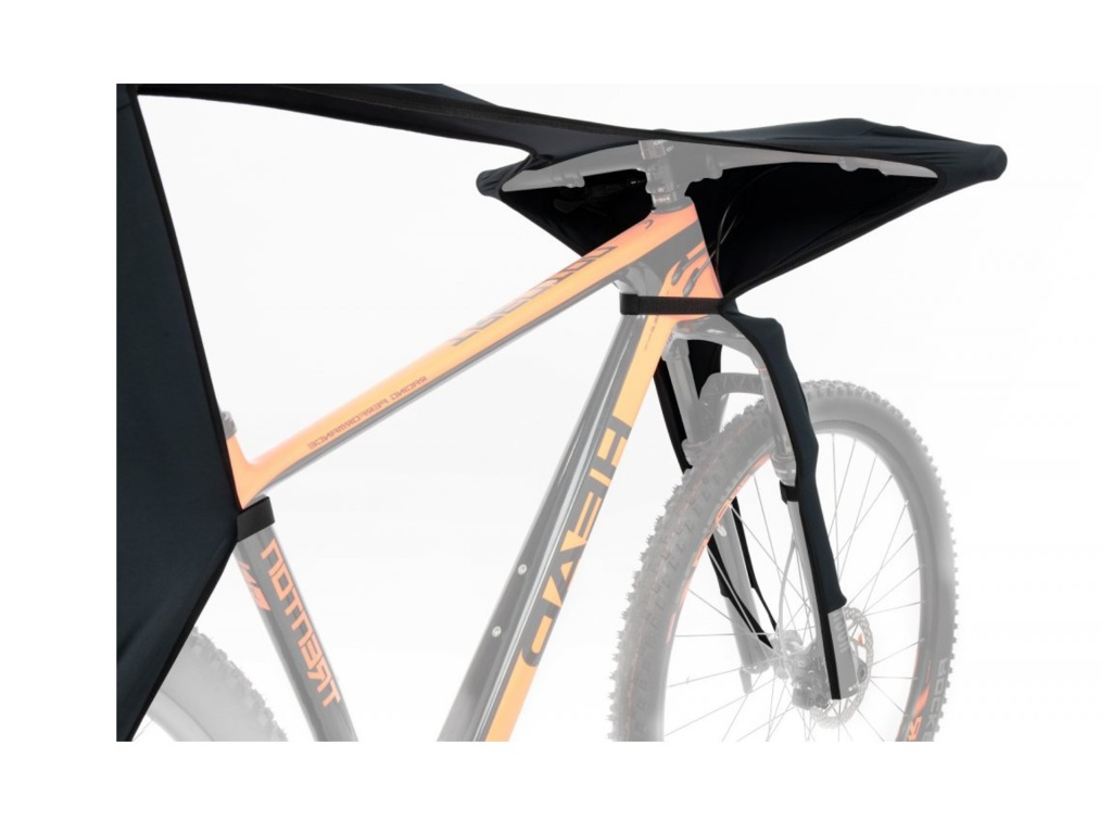 Kryt je natažený od přední vidlice přes řídítka až k sedlu a zakrývá i zadní vidlici vašeho kola. Je proto vhodný pro převoz více kol i pozpátku. Po návratu z cesty, můžete snadno vyprat kryt v pračce.
