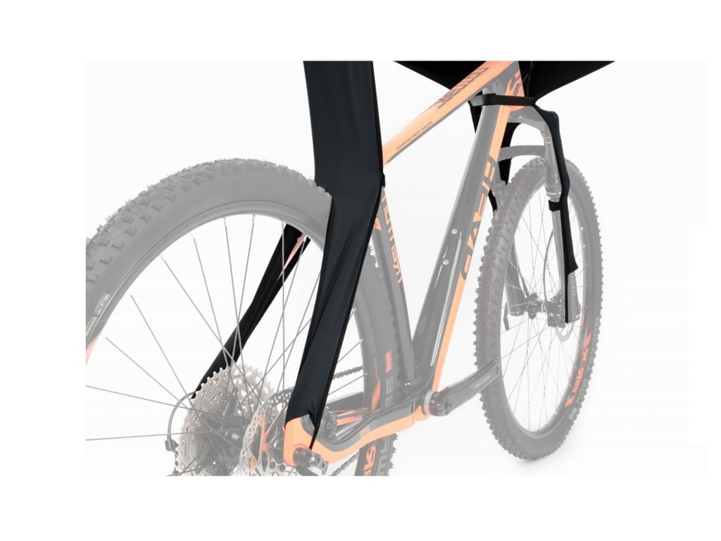 Ochrana kola mRoof pro převoz kol na střešním nosiči. Kryt je natažený od přední vidlice přes řídítka až k sedlu a zakrývá i zadní vidlici vašeho kola. Skvělá ochrana před kamínky, hmyzem a nečistotami, které by mohly vaše kolo na střeše poškodit.
