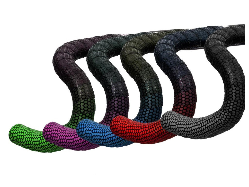 BIKERIBBON Grade plus je omotávka se silikonovou vrstvou a vzorem včelí plástve, která poskytuje perfektní a komfortní grip. Jako designová perlička je ombre přechod barvy.