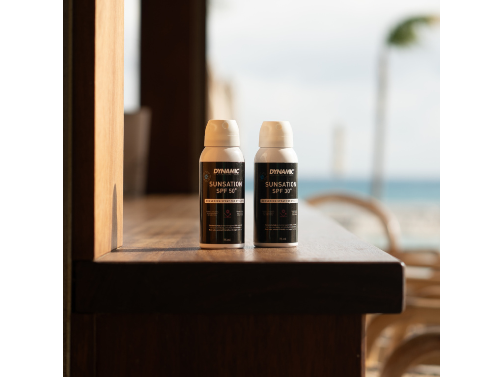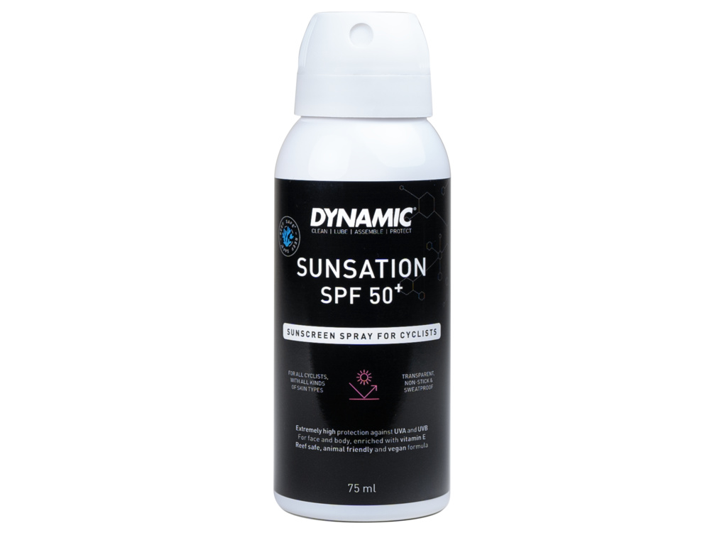 Lehký a nelepivý opalovací sprej SPF 50 navržený speciálně pro cyklisty a sportovce.