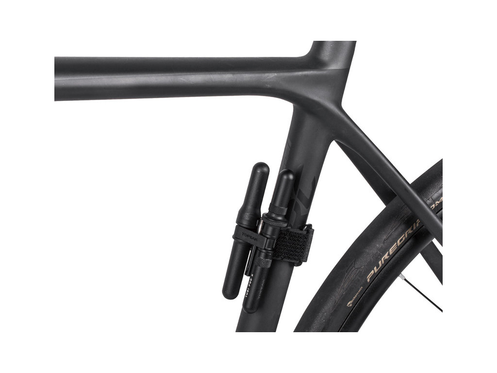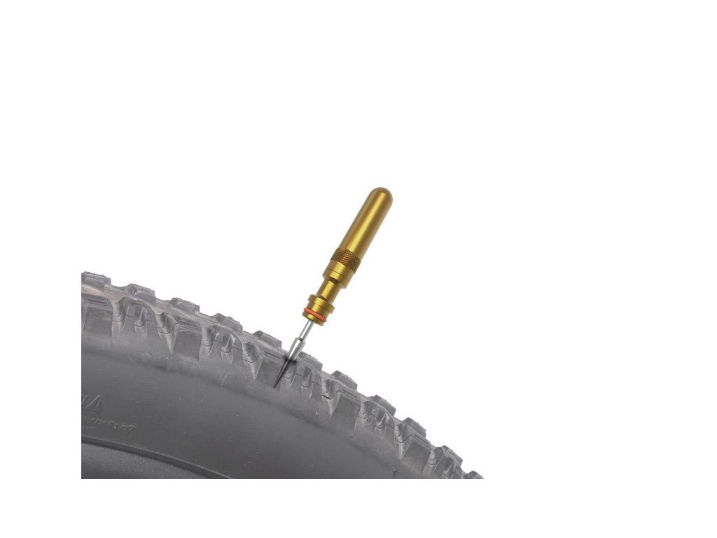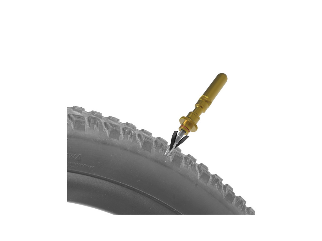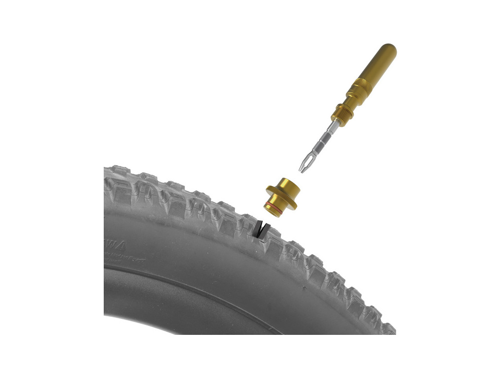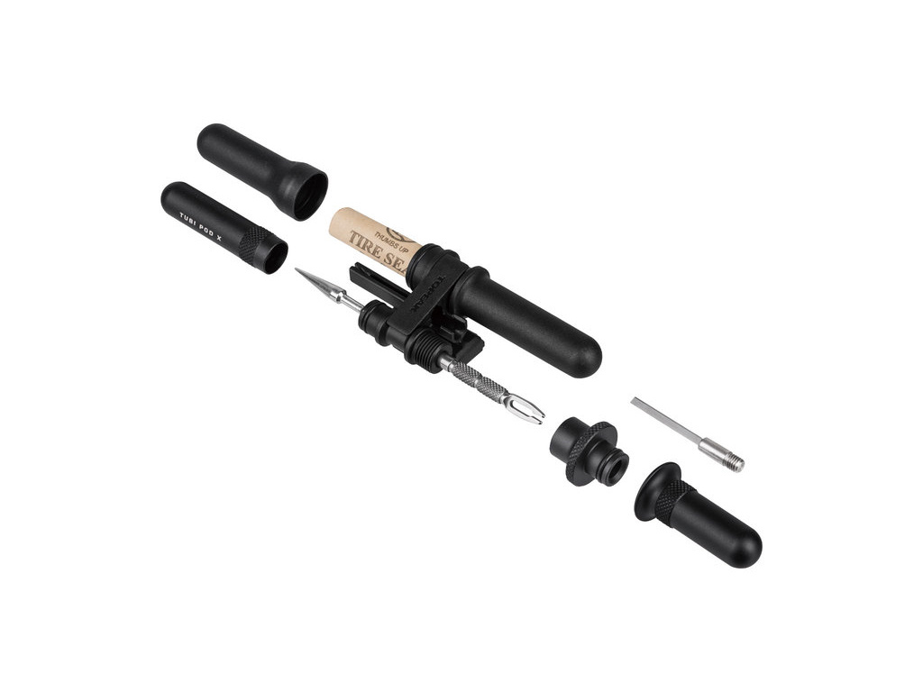 Velmi kompaktní sada pro opravu defektů u bezdušových plášťů v nouzových podmínkách. Nástroje pro opravu se ukrývají uvnitř hliníkového modulu, zatímco pětice knotů se ukládá do lehkého polymerového pouzdra. Oba pody se připevňují k montážnímu modulu, který lze připevnit k rámové trubce nebo sedlovce.