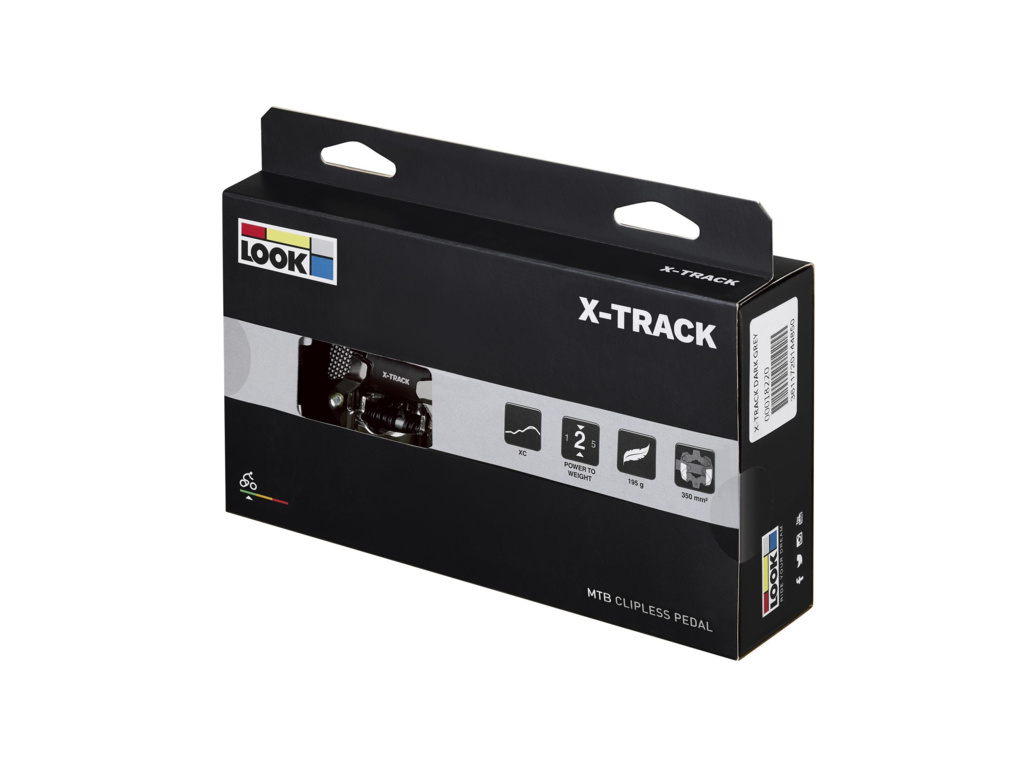 X-Track je základní model MTB pedálu LOOK, který je tvořen robustním hliníkovým tělem a dvojitě utěsněnou osou z materiálu Chromol, Ta zajišťuje naprostou plynulost v průběhu šlapání. Předpětí lze snadno a rychle nastavit v rozsahu 6 až 14 podle požadavků cyklisty. Pedály kombinují mechanismus SPD standardu s širokou kontaktní plochou pro efektivitu a bezpečnost.