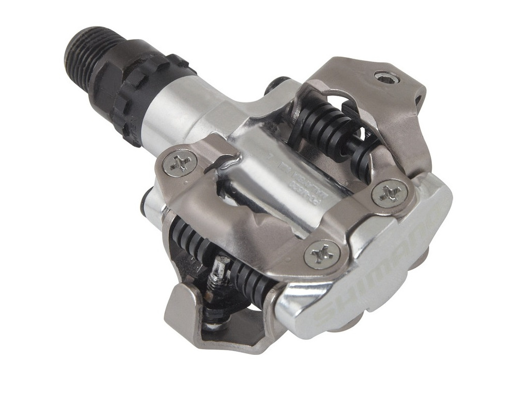 Sportovní terénní pedály SPD Shimano PD-M520 MTB ve stříbrné barvě. Nejoblíbenější model, nízká váha.