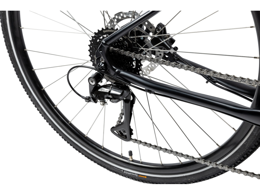 Crono 3 má solidně lehké ráfky Mach1 a kvalitní pláště Continental Speedride 42-622, se kterými se nemusíte bát vjet i na šotolinovou cyklostezku či hladkou lesní cestu.