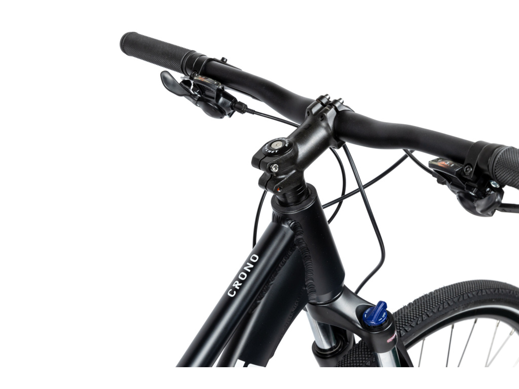 Hliníkový rám Crono nabízí spousty možností uchycení – stojan, nosič, blatníky, košík na vodu, prostě vše, co na vyjížďkách potřebuješ. O estetiku se stará vnitřní vedení kabeláže, takže design je čistý a hladký. Crono s přízviskem "W" má sníženou horní rámovou trubku pro pohodlnější nástup a výstup z kola.