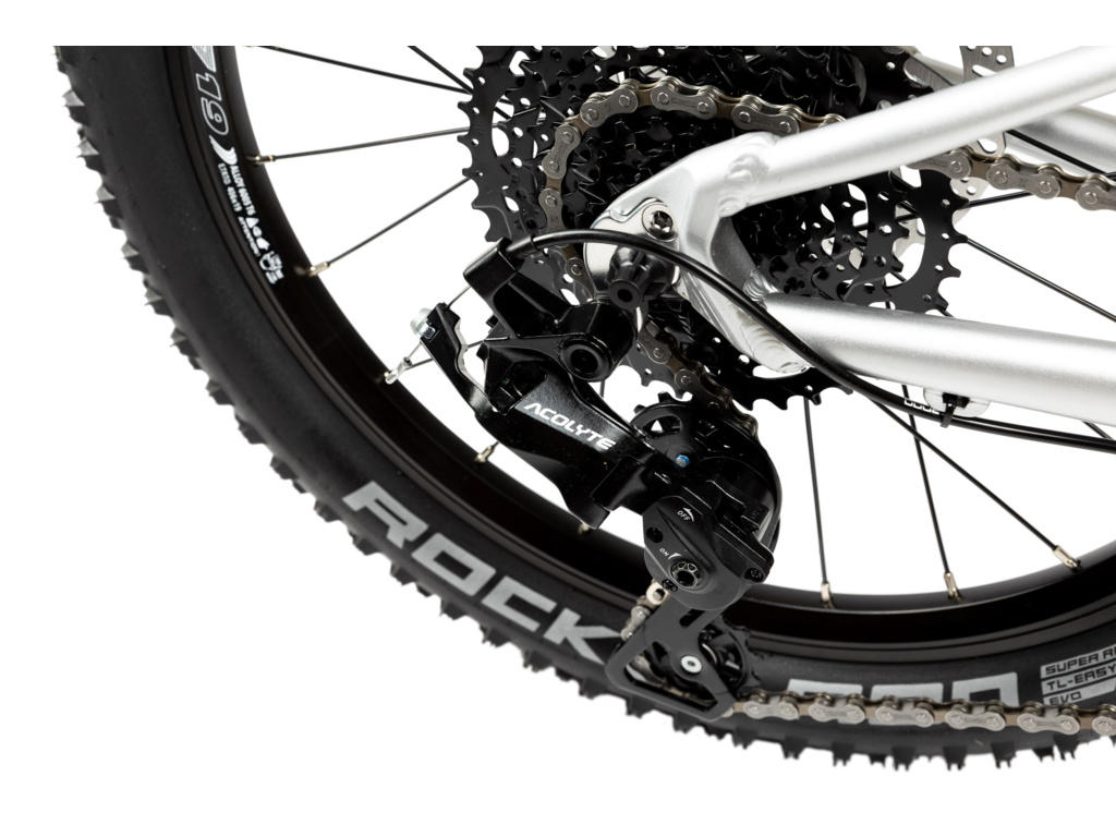 Zmenšenina dospěláckého modelu Razzer. Geometrie přizpůsobená malým objevitelům prvních trailů a XC závodů. Dětský bike jsme osadili vzduchovou vidlicí, hydraulickými brzdami a kvalitní přehazovačkou Microshift.