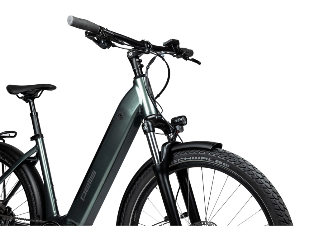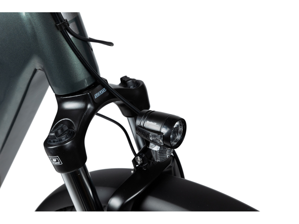 Elektromotor Bafang M400 se solidním točivým momentem až 80 Nm tě nenechá ve štychu ani v tom nejprudším kopci. K tomu ti 630 Wh baterie nabídne velice dobrý nájezd kilometrů. Pro větší pohodlí a bezpečnost je přední světlo od výroby připojeno rovnou na baterii. V šeru jej můžeš jednoduše zapnout, vidět, a být vidět.
