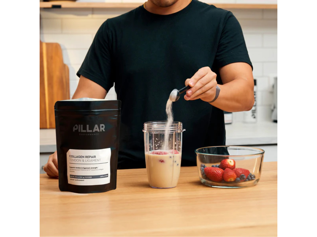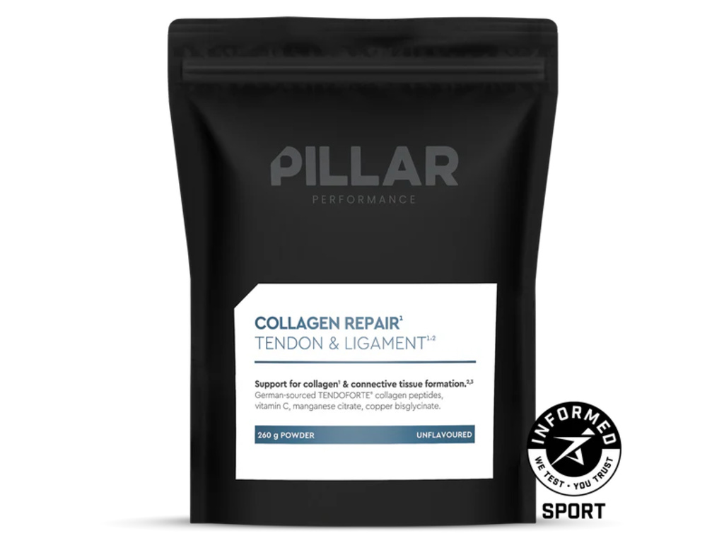 PILLAR PERFORMANCE Collagen Repair obsahuje klinicky prověřené bioaktivní peptidy Tendoforte®, u nichž bylo prokázáno, že pozitivně ovlivňují pevnost a zdraví šlach a vazů během fyzické aktivity.