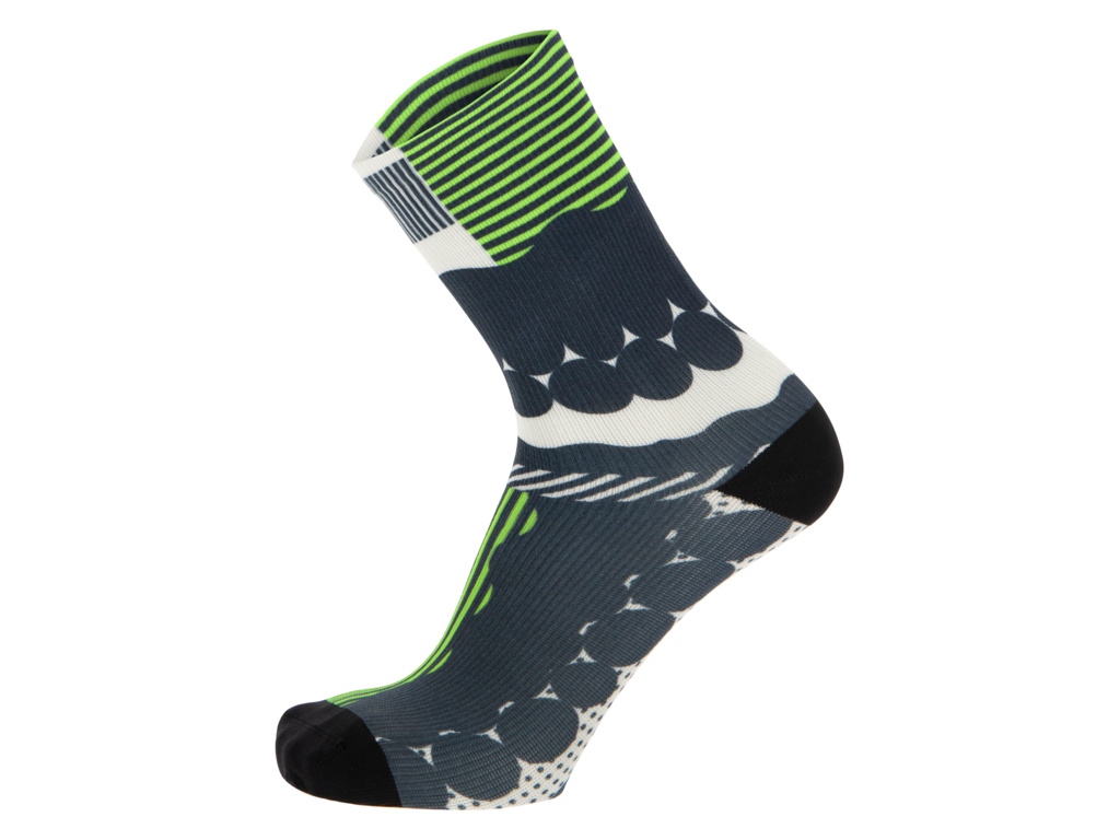 Extrémně prodyšné cyklistické ponožky s potiskem dinamo? To je model SANTINI Optic.