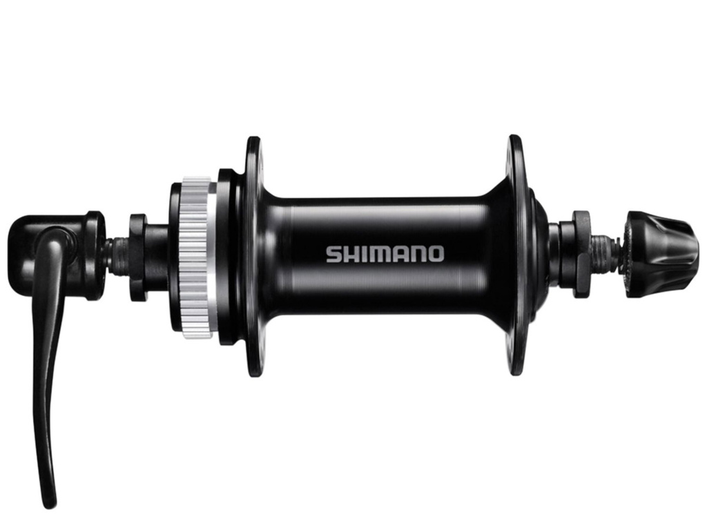 Přední náboj Shimano HB-QC300 v černé barvě a uchycením kotouče na CenterLock.