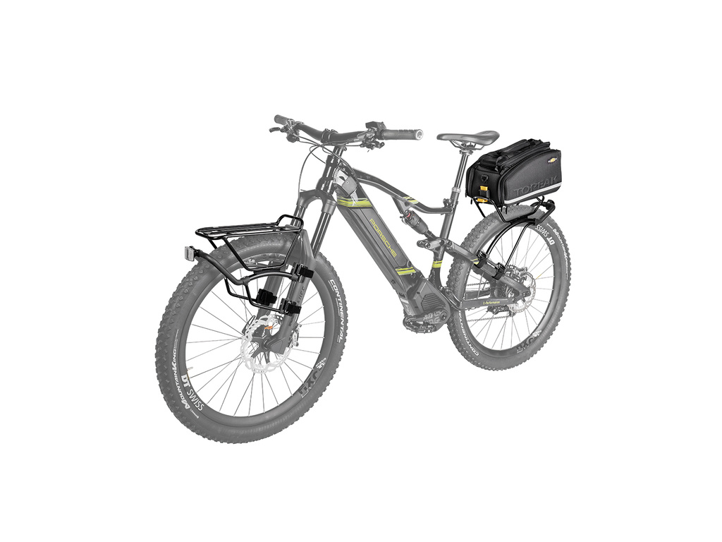 Perfektní rychloupínací přední nosič, určený uchycení na odpružené vidlice MTB, e-biků nebo hardtailových kol. Nosič je výjimečný tím, že má polohovatelnou vrchní část – ložnou plochu a tím se umí přizpůsobit různým velikostem a geometriím vidlic.