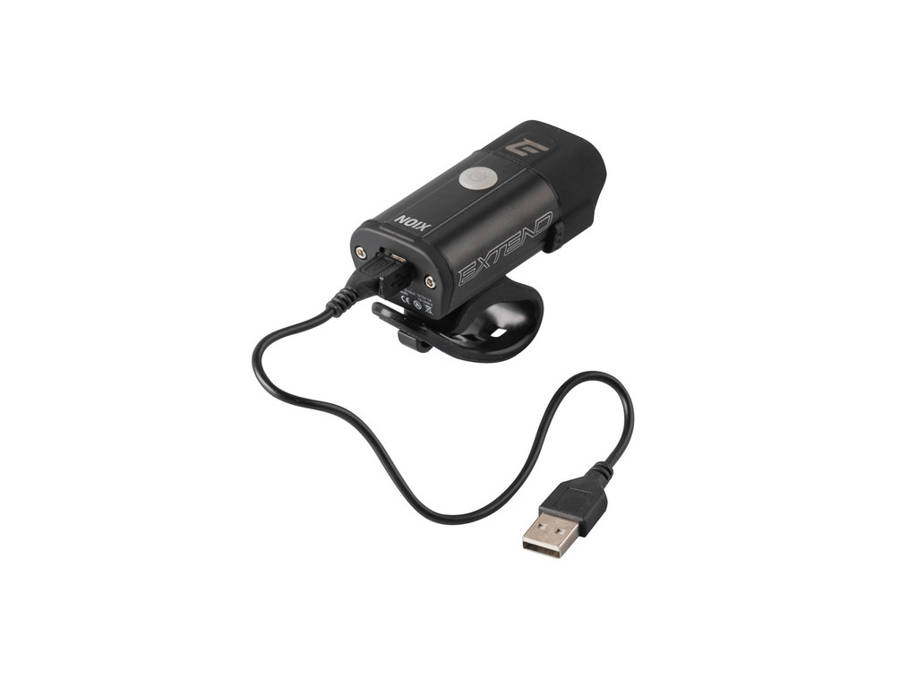 Výdrž baterie: v závislosti od zvoleného režimu svícení: 100 % (1h 40min); -50 % (3h 20min); -25 % (6h 40min), v závislosti od zvoleného režimu blikání: 3 hod 20 min (blikání 100 %), 3 hod (blikání 100 % výkonu + 2 postranní oranžové LED diody)
